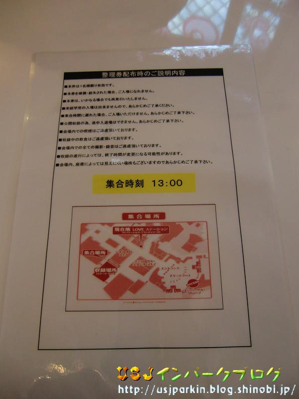 いやぁ~今日はとっても楽しいインパークになりました。 1.このブログを通してまた新しい方とOFF会しちゃいました。いろんな事をお話しながらパークを散策したり、ショーを見たり。ご飯も忘れてパークを満喫。ありがとうございました(^^) 2.スヌーピー・ラウンジへ行きました! またまた、スヌーピー・ラウンジに連れて行ってもらいました(^^)通路や、ラウンジ内の写真も一杯撮れたのでまたご紹介します。 3.ジャイケルマクソン公開収録 in USJ いやぁ~バラエティーの収録って面白かったです(^^) どんな、放送内容になるのか楽しみです。 で、今日は3のジャイケルマクソンについての記事を書きますね。 朝一番で並んでもらっていたところへ、合流し朝一番のダッシュ。 ▲皆さんお目当てはここのようで、すぐに人がびっしりになりました。 僕は50番をGET ▲テーブルにはこのような注意書きがあり、クルーさんが丁寧に説明をされていました。 14:00収録スタートですが、13:00集合、時間厳守っていうことがネックです。 待ち列の間に、これをもって説明されていましたので、案内面はかなり充実していたと思います。 ▲集合場所は、ここですが…まだ10:30頃のため誰もいず。 ちなみに、整理券の配布は、11:00には配布を終了していた(?)と思います。 かなりの大人気でした。 ▲集合時間の24分前の12:36。 全然ひとがまばらですが、この後ものの数分で大混雑になりました。 今日の看板チェック^^ ▲ジャイケルマクソン一色。 収録時間は80分かた120分ということでしたが、実際は収録+抽選会などで、14:00~16:30までの150分ほどかかりました(苦笑) そして、この看板の後ろのフェンス越しには… ▲4チャンネルのマスコット、「らいよんチャン」がデザインされた特殊車両を見つけました!! このトラックから横に出た感じに見えるのはどういう構造なんでしょか?? ▲整理券はこちら。簡単な紙ですが、この番号がとっても大事でした。 入場のときも、順番どおりに入場して好きな席を選べるし、抽選会もこの番号で行われました。 右側は、番組からの記念品のステッカーです。 ▲いよいよ、入場です!!ワクワクドキドキ。 …が、会場内の撮影は一応禁止なんですよね。 でも、収録前なら撮ってもいいとのことでしたが、公開して良いかは分からないので、中はご紹介できません。あしからず。 でも、とっても懐かしいものをみつけました。 ▲収録場所のStage33の前にはこんな衝立が!! こちらの記事:この日何の日気になる日~をご覧いただくと、分かりやすいと思います。 このデザインのついたては以前はE.T.がクローズしたあとは、E.T.の待ち列あたりを囲っていたのですが、いつの間にか撤去され、新しく白くて大きな衝立(スペース・ファンタジー・ザ・ライド 外装工事2)になったんですよね。 いやぁ、久々に見れた(^^) あっちなみに、こちらも。 ▲ジャイケルマクソンの看板はなくなって、Stage33の看板になっていました。 ということで、プレミアな一日は終了です。 それでは、みなさん、また明日。 PR |