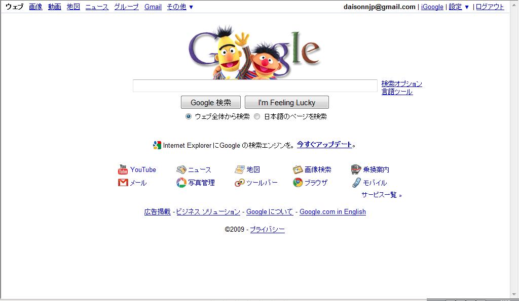 × [PR]上記の広告は3ヶ月以上新規記事投稿のないブログに表示されています。新しい記事を書く事で広告が消えます。 みなさん、こんばんわ。 さて、今日も飽きずにグーグルのページで、おぉってなります(^^) ホント、このネタは…いいですねぇ。クリスマスのネタが少ない僕にとっては助かります(爆) ▲http://www.google.co.jp/ もうすぐセサミストリートが40周年だそうです。 <今までの登場キャラクター> 11/4:ビングバード 11/5:クッキーモンスター 11/6:アーニー&バート 今後エルモやゾーイは出てくるでしょうねぇ。 ただ…アビーは出てくるのでしょうか? カウント伯爵、グローバーは?オスカーは?? …と、かなり気になる夢有民です。 明日はUSJにインパークして、見ようかと思いますが…まぁ、レポートが終わればですねぇ(苦笑) そういえば、今日からプラチナパスの冬のプレミアショー先行予約が始まりました。 最初は違うところに電話をかけていましたが…なんとか初日と千秋楽のチケットをゲットしました。 さて…他の日も買おうかなぁ…。どうしようかなぁって感じです。 まぁ、ゆっくり考えます(^^) では、素敵なクリスマスを~~(^^) --------------------------------------- 「おおさか遊ぶろぐ」でこの記事をチェック! PR |