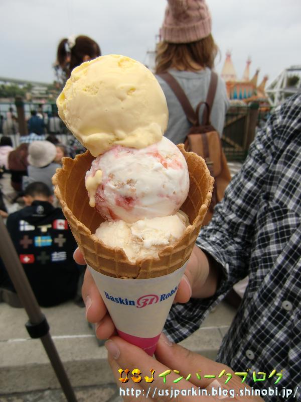 最近レポートと課題でもう忙しさが半端ないです(苦笑) まぁ、USJに行ったり、友達と遊んでいるので更に忙しいのですが(^^) さて、今日は11/3までのキャンペーンをご紹介しちゃいますね。 その名も、キャッチ・ザ・ドリーム・キャンペーンです! ▲パーク内のアイスクリームは、全て31アイスクリームなのですが、そちちらのお店でワッフルコーンダブル(¥580)を買うと、スペシャルフレーバーのマンゴタンゴが1つもらえてトリプルになるというキャンペーンです! しかも、このマンゴタンゴはこのキャンペーンでしか味わえないスペシャルフレーバーなんです。 ▲まずは普通のフレーバーから2つを選びます。 僕らはストロベリーチーズケーキとキャラメルリボンにしました。 そして、マンゴタンゴが乗ると… ▲おぉ~~コーンからあふれんばかりです。 ▲美味しそうだなぁ!!(^^) こちらの商品は、アミティ・アイスクリーム、ピンクカフェ、ルイズN.Y.ピザパーラーにて販売中です。 年間スタジオ・パス・ホルダー限定のハッピーダイニングカードも使えて、10%OFFに! ¥528で楽しめます!! 僕らは割り勘なので…1人¥264です(^^) 皆さんもいかがでしょうか?? このキャンペーンは冒頭にも書きましたが11/3までですので、お早めに!! では、また明日。 PR