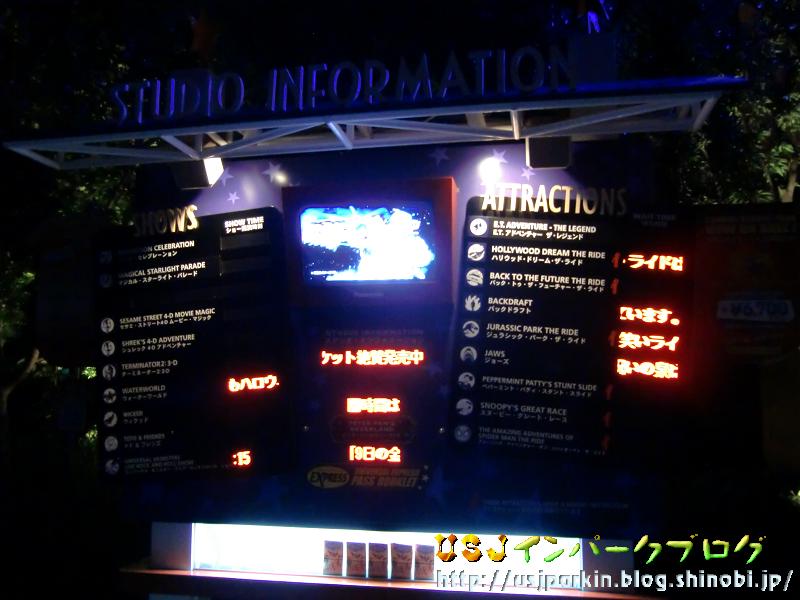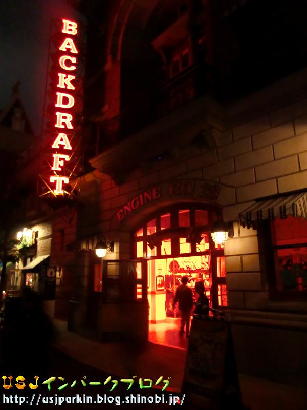 レポートが終わらないのに、友達と奈良女子大学に行きました! 彼女探しではありませんよ(苦笑) 友達の友達の発表会を鑑賞しに行ってきたんです。とっても素晴らしかったです!! それにしても、女子大には男子トイレがないのかなぁ…って思ってましたが、講堂にはとりあえずありました(^^) っと、前置きは置いておいて、今日はみなさん、お待ちかねのハロウィーン・スペシャル・ナイトの体験レポートのⅠをお届けします。 今日は昨日の行程表の ・ラストのショーの整理券をゲット(18:22) ・バックドラフト初回(18:23)