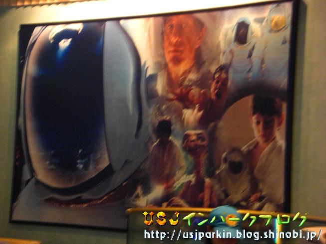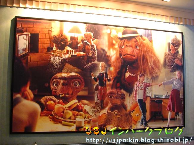 で、いよいよ、ライドかな??と思われた方も多いと思うのですが、 ここで、番外編のE.T.美術館をお送りします。 実は、E.T.のパスポート・ルームでは絵画をご覧いただくことが出来ます。 まずは、向かって右側から。 ▲こんな順番で、E.T.の場面がさまざまに描かれた、大きな絵画をご覧いただけます。 次は、向かって左側。 ▲手前のほう(写真右)はE.T.っぽい宇宙人がたくさんいます(笑) 映画の場面ではないのかなぁ?? 何気なく、通り過ぎるパスポート・ルーム。 そこには、E.T.の絵画が飾られています。是非、名前を言うのを待っているときは、辺りを見回してみてくださいね。 さて、明日は、「E.T.ハプニング!」をお送りする予定です。 では、また明日!! ※学校のレポートがヤバイ!!(泣) |