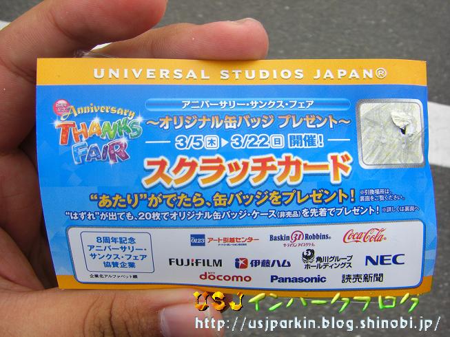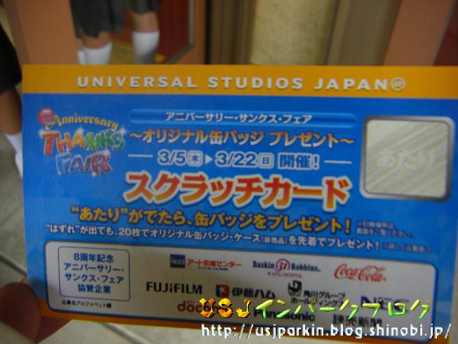 3月には、毎年春のピントレーディングが行われていましたが、今年は、不景気の影響か、缶バッチに変更されていました。 そして、stage22からパレス・シアターに変更で、縮小営業となったイベントの中央センターをご紹介します。 ▲入るとこんな感じです。大きな缶バッチの見本がなかなかのつくりです。 ▲ここで、缶バッチの見本(額に入った缶バッチそのもの)をみながら、どれにするかを選びます。 在庫があるものでしたら、どれでも、選ぶことが出来ました。 ただし、交換は出来ません。 ▲これが、「あたり」券です。 これが、やっかいで、ほとんど「はずれ」かと思いきや、ほとんど「あたり」で苦戦しました。 で、こんなのでもOKです。 ▲スクラッチを強くやりすぎてしまった…なんて場合でも、一字「あ」などが読めれば、OKです。 さて、こちらが、その缶バッチになります。 ▲この右側の下から三つが終盤には在庫切れになって、みなさん苦戦されたようです。 やっぱり、人気のあるものからなくなったようです。 そして、ジャン!! ▲これなんだかおわかりですか?? ▲もうわかったかな?? ▲そう!はずれ20枚でもらえる額です。 一応がんばって20枚集めました。 ▲高い額ですこと(苦笑) では、みなさん来年もイベントを楽しみましょう!! では、また明日。 明日はUSJに用事があって、インパーク予定です。 疲れていなければ。 では!! PR こんにちわ。 |