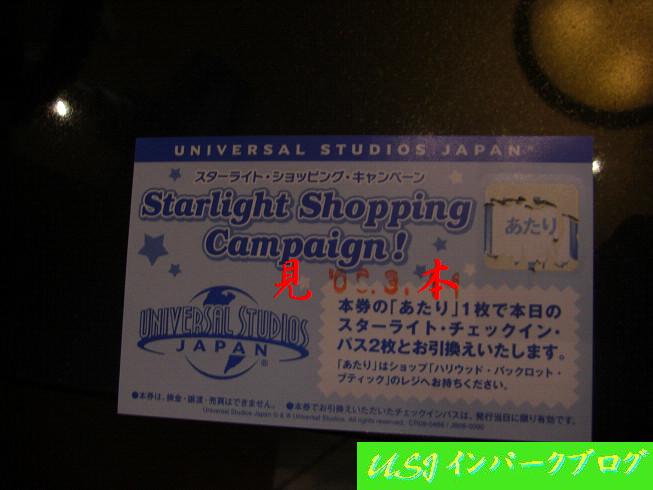 ここでは、以下のようなキャンペーンを行っています。 ▲詳細がよくわからないですね(苦笑) 詳細は、ショップのオープンから15:00までに2000円以上買ったゲストが対象で、スクラッチカードがもらえます。 それを削って「あたり」が出ると、マジカル・スターライト・パレードの有料鑑賞エリア「スターライト・エリア」のパスがいただけるという企画です。 ちなみに、スターライト・エリアのパスは¥700で販売しています。 このイベントは5/22までです。 で、友達を連れて行った際のことです。 14:50ごろにそのショップへ立ち寄ると、クリアファイルやストラップを買うとのことで、急いで列に並びました。 ぎりぎり並んで、スクラッチカードをいただきました。 で、削ると… ▲あたりです!!(^^)/ 二人とも呆気にとられてました。だって、こんな締め切り時間、間際にあたるとは…。 で、 ▲友達が買ったのですが、僕も恩恵に預かっちゃいました(笑) チケット右上を見てもらうと、☆型に穴が空いていますよね。これが抽選で当てた証拠です。ピンバッチはもらえませんでした(泣) そして、多分、ショー中止の際のマルチ・チョイス・クーポン引き替えも出来ないのでしょう。(不確定情報) ちなみに、3/11もやはりスターライトエリアは超満員だったので、あきらめて、30分前から、最初の曲がり角の一等地で立ち見することになりました(苦笑) なんで、チケットは記念にお持ち帰りしました。 <余談> スクラッチカードをもらって削る前の写真を撮るつもりが、「この場で削ってください」とせかされたので、写真が撮れませんでした。 ってか、どうせ「はずれ」だろと思ってあきらめましたが…「あたり」なら絶対撮るべきでした(泣) つまり、15:00前にスクラッチ・カードをショップで削らせているということは、まだ「あたり」が残っている証拠…かもしれませんねぇ。 それとも、全員この場で削らせているのでしょうか?(不確定情報その2) コメントは夜に書かせていただきますね。 ちょっと忙しいんで、すいません。 PR