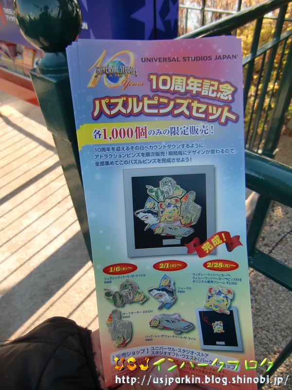 さて、そろそろ1/10日が近づき各アトモス・ショーとも終演を迎えることになる季節です。 ですが、今回は10周年に関することです。 パーク内3箇所に設置されているインフォメーション・ボードの下には ▲リーフレットコーナーがあるんのですが、 ここで、こんなリーフレットを発見! ▲10周年記念パズルピンズ!! うわぁ~これコレクター心をくすぐられますねぇ。 第一弾は1/6~ 第二弾は2/1~ 第三弾は2/28~ いずれも1000個限定ですのでお早めに。 僕ももちろん、帰り道に1つずつお買い上げ。 ユニバーサル・スタジオ・ストアで ▲見て、選んでいると商品部?のクルーさんからお声かけが。 「900円ですが、意外と大きいなぁ」とか、「第三弾はすぐなくなりそうですね」とか世間話をしながら選びました(^^) ちなみに、1/5の夜にこのディスプレイを頑張ってされたんだそうです。1/6もインパークしたのに、リーフレットが無くて(?)まったく気づかなかった僕(苦笑) で、レジへ行くとレジでも「第二弾、第三弾とありますので、集めてくださいね」と。 クルーさん達は久しぶりに気合が入ったピンの販売に結構反応良いんだなぁ、と思った夢有民でした。 1/10、11とインパークした際にも残っていれば2セットコンプリートを目指そうかなぁ…とか。(1セット=¥900×4+¥3000=¥6600…汗) ちなみに、年間スタジオパス・ホルダー専門ショップでも、 ▲デカデカとディスプレイ。 みなさんも、USJの10周年をカウントダウンするようにピンバッチを集めてみてはいかがでしょうか?? 今後のインパーク予定 1/10(月・祝) ウィキッドを筆頭にラストショーを見る。 1/11(火) 夕方のみ 休止アトラクションの様子見 1/14(金) センター試験準備で大学休みなので 1/25(火) 夕方のみ 休止アトラクションの様子見 って感じです。 では、また。 PR