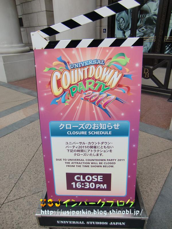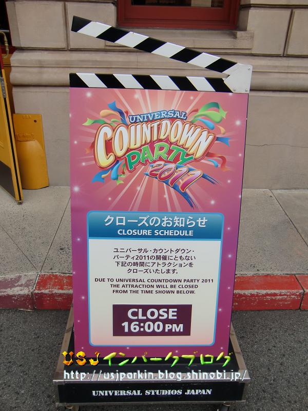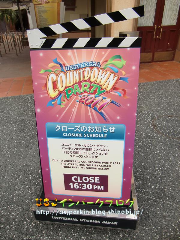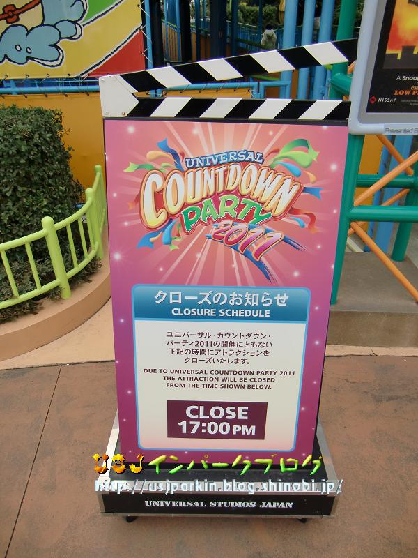 さぁ、今年も残り1時間を切りました。 今年一年、ブログを楽しみに見てくださった皆様、 本当にありがとうございました。 また来年も続けていこうと思いますので、よろしくお願いしますm(..)m さて、12/31しか見れない看板がたくさんあるので、そちらを特集しちゃいますね(^^) ちなみに、昨年のカウントダウン限定の看板はカウントダウンの特別な風景、12/31インパーク日記 にてご覧板だけます~。 というか…今日は大晦日なのですが、 ▲すごい雪だったんですよねぇ。滋賀県は。 なので、パークまでいつもより30分くらい余計にかかっちゃいました(苦笑) ユニバーサル・シティ駅を出てまず目に飛び込んできたのが… ▲①インフォメーションの看板ですねぇ~。 そして、次が、 ▲②③④入場待ち列用の看板 まん前ではもうゲストが待たれていたので、斜めからの写真で失礼します。 ちなみに、裏から見ると ▲こんな感じ。 昨年は裏にも貼ってあったのですがねぇ…。 経費節約? さてさて、パーク入場前にもまだありますよ? ▲⑤今日は17:00までっていう営業時間表示の看板です。 今日は強風のため、ロープで柱に巻かれていました。 このまま入場かと思いきや、まだ忘れてますよ?? ▲⑥当日券販売所(団体受付) まぁ、これは偶然歩き回って発見したのですが。 そして、いよいよインパーク。 インパークしてからは、アトラクション前にあるので、そちらをご紹介。 <ハリウッド・エリア> ・ハリウッド・ドリーム・ザ・ライド前 ▲⑦16:30PMまで。といいながら強風のため終日運休でした。 実は去年も強風で運休だったんですよねぇ。 ・スペース・ファンタジー・ザ・ライド ▲⑧17;00PMまで。今年新たに加わったスペース・ファンタジー・ザ・ライド。 ちゃんと、看板が配置されていました。 <ニューヨーク・エリア> ・アメージング・アドベンチャー・オブ・スパイダーマン・ザ・ライド ▲⑨16:30PMまで。これ…カチンコの開き具合が他のより大きいような…。 ・ターミネーター2:3D ▲⑩このときすでに案内終了していました。 昨年同様15:10PMまでだったようです。 ▲他のアトラクションとは違ってこれだけ案内終了の表示でした。 <サンフランシスコ・エリア> ・バック・トゥ・ザ・フューチャー・ザ・ライド ▲⑪17:00PMまで。 ・バック・ドラフト ▲⑫16:00PMまで。このときは40分待ちと大人気でした。 <ジュラシック・パーク> ・ジュラシック・パーク・ザ・ライド ▲⑬17:00PMまで。 <アミティ・ビレッジ> ・ジョーズ ▲⑭17:00PMまで。これは、アトラクションの入り口から離れた通路にしか看板がありませんでした。 <スヌーピー・ズタジオ> ・ペパーミント・パティのスタント・スタライド ▲⑮17:00PMまで。 ・スヌーピーのグレートレース ▲⑯17:00PMまで。 ちなみに、アニメ・セレブレーションと4-Dシアターとマジカル・オズ・ゴーラウンドには、この特別看板はありませんでした。 4-Dシアターは ▲いつもの看板で対応。 さて、ここまでズズズイ~~~ット紹介してきましたが、共通して昨年と大きく変わったところがあるのですが、いったいどこでしょうか? それは、各看板のデザインがアトラクションごとからカウント・ダウン・パーティー2011に統一されたということです。 だからこそ、今回はアトラクション入り口の配置状況と看板そのものを紹介しました。 一言でいうと…ちょっと、つまんなかったです。デザインがどこもかしこも同じなので。これも経費削減? さて、パークの通常営業では使用されることのない看板を見つけてので付録。 これだ~ ▲⑰どうやら女性用お手洗いの混雑時に使われるようですね。 フォーエバーのステージ横に置かれていました。 カウント・ダウン営業中のみの看板もあるでしょうから、気になりますが、今回は17枚も特別な看板を見られたので良しとしましょう(^^) それでは、みなさん、今年の更新はココまで。 良いお年を。 ハッピ・ニュー・イヤー。 USJインパークブログ管理人:夢有民 PR